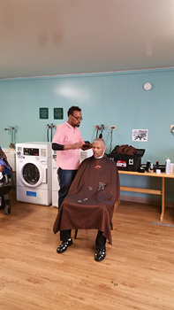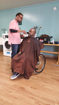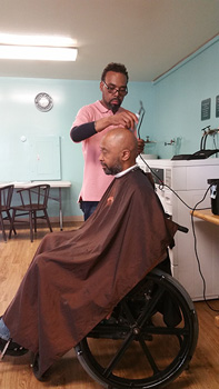 Cain's Barber College cutting hair for Father's Day 2015
